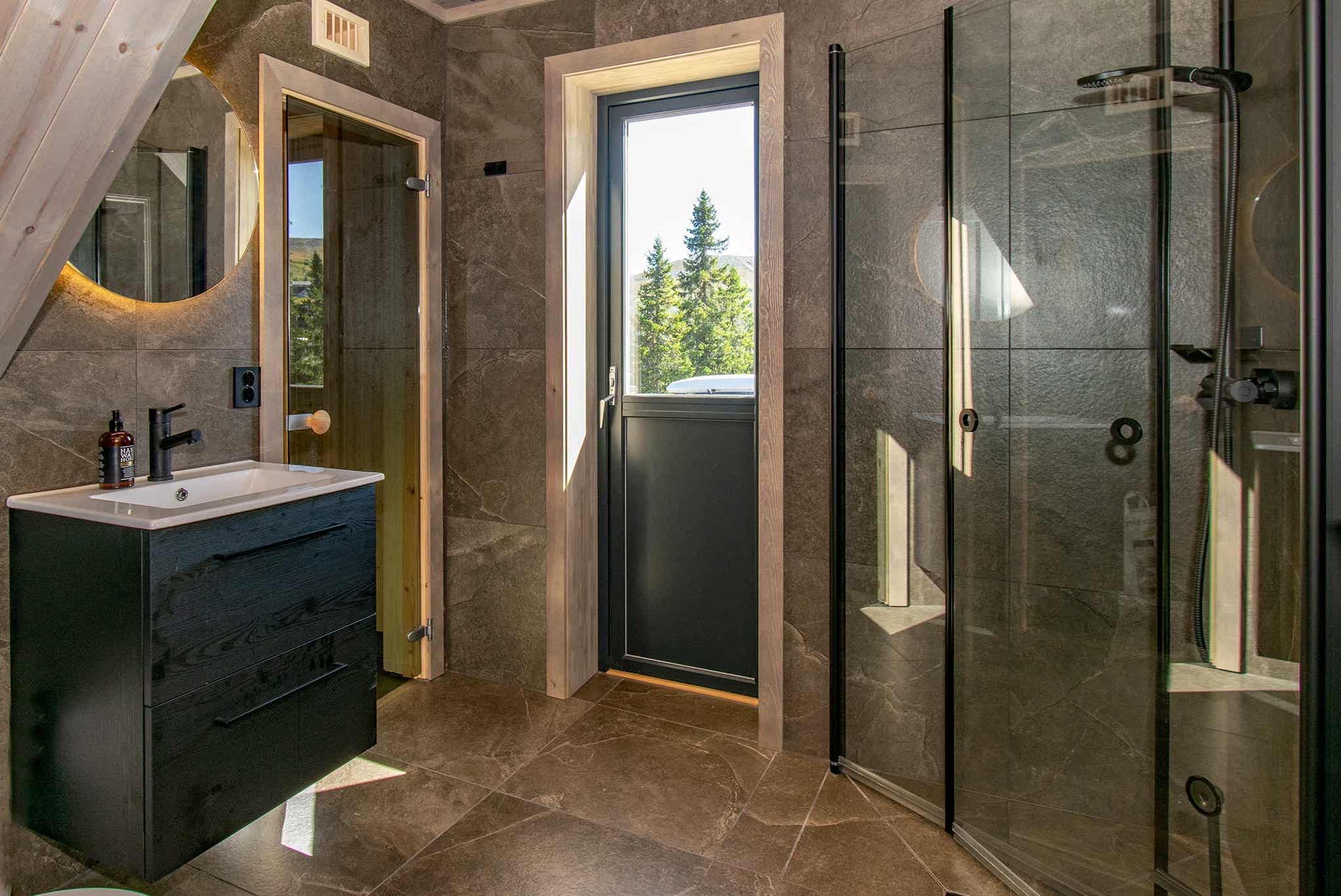 Badkamers:Badkamer 1: met douche en toilet. Badkamer 2: met douche, toilet en sauna.