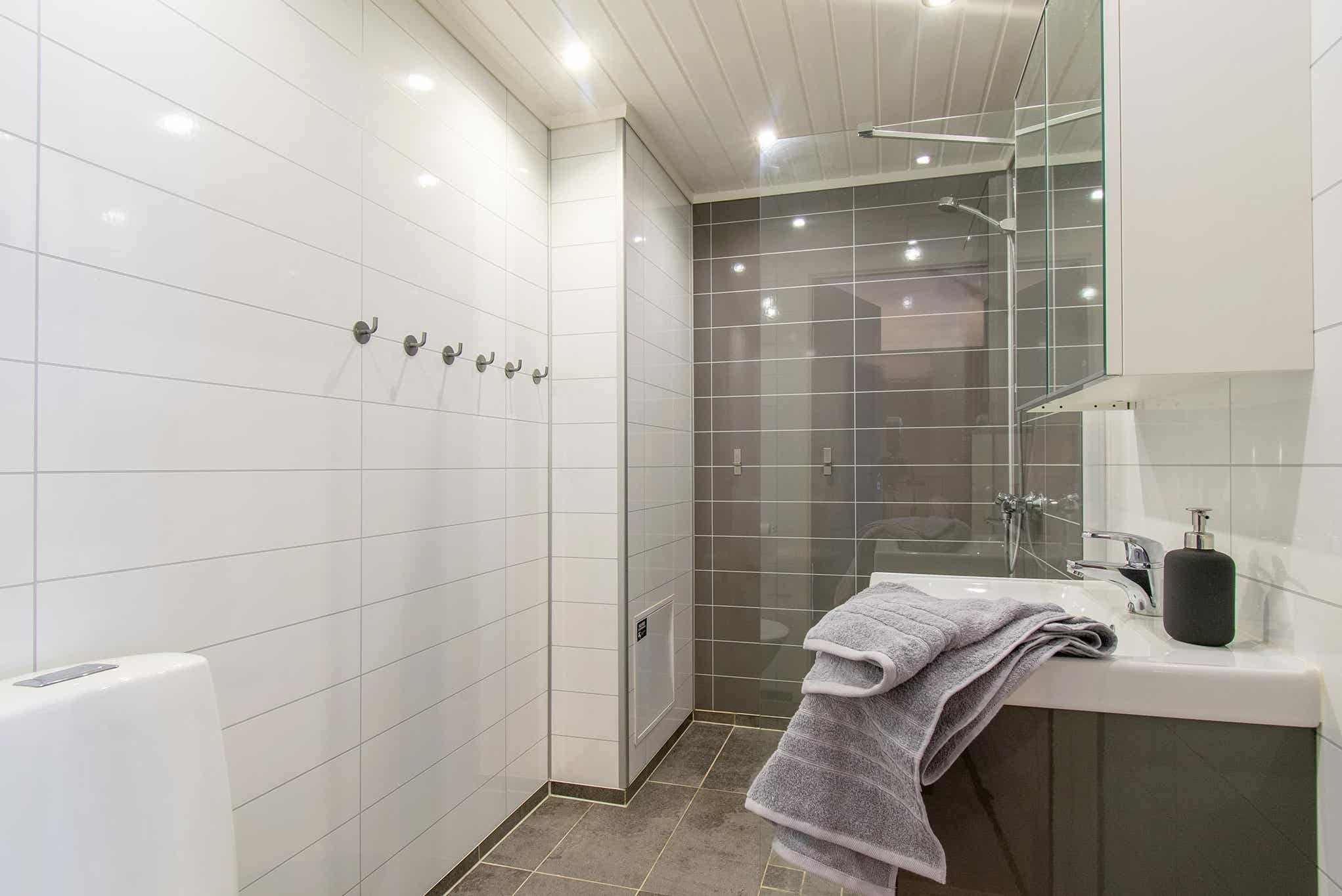 Badkamers:Badkamer 1: met douche en toilet.