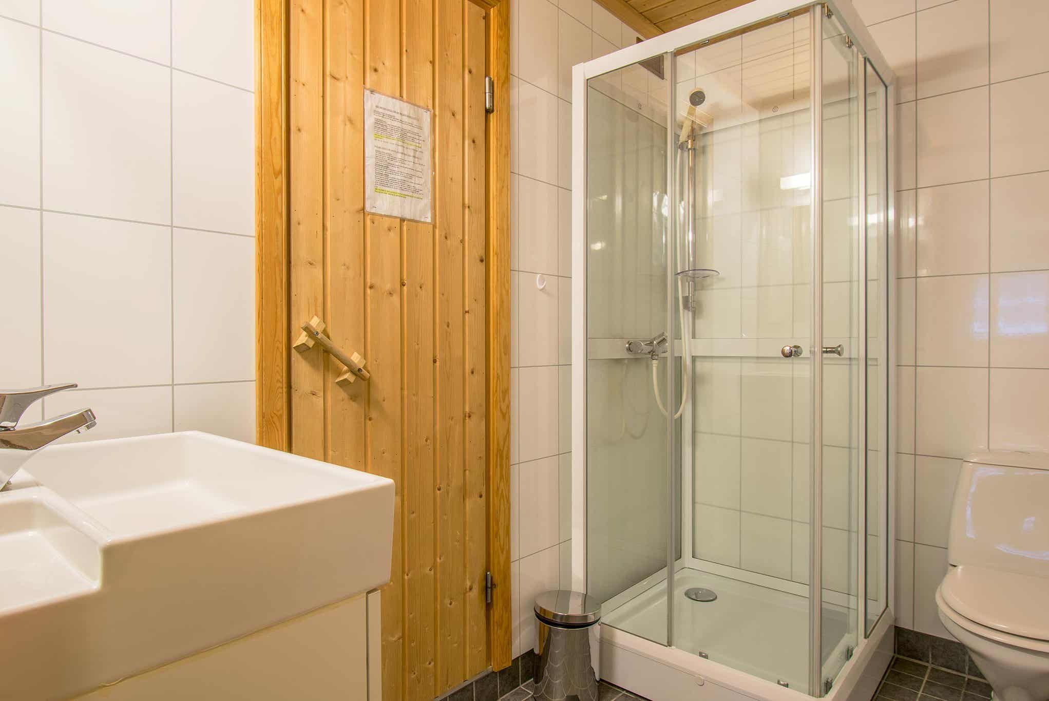 Badkamers:Badkamer 1: met douche, toilet en sauna.
