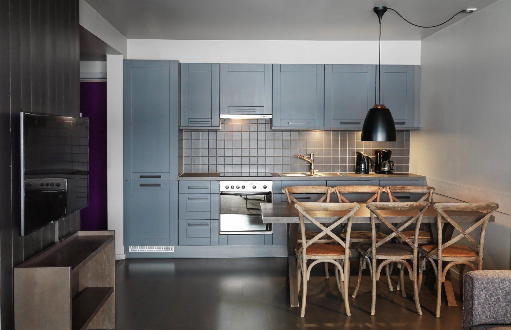 Charmante suite van ongeveer 50 vierkante meter in het hotel met twee slaapkamers, keuken, woonkamer en badkamer met douche. Een slaapkamer bestaat uit een tweepersoonsbed en een gratis badkuip, terwijl de andere een stapelbed heeft – perfect voor kinderen. De suite kan ook worden geboekt met een tweepersoonskamer. Dan krijg je een suite met 3 slaapkamers en 2 badkamers.