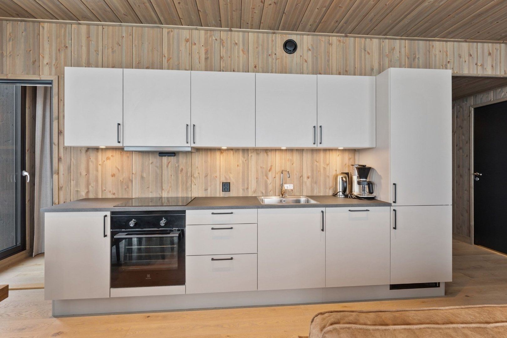 Favn Backyard 65C biedt alles wat u nodig heeft voor een ontspannen verblijf. In de keuken vindt u een kookplaat, koelkast, vriezer, vaatwasser en koffiezetapparaat.