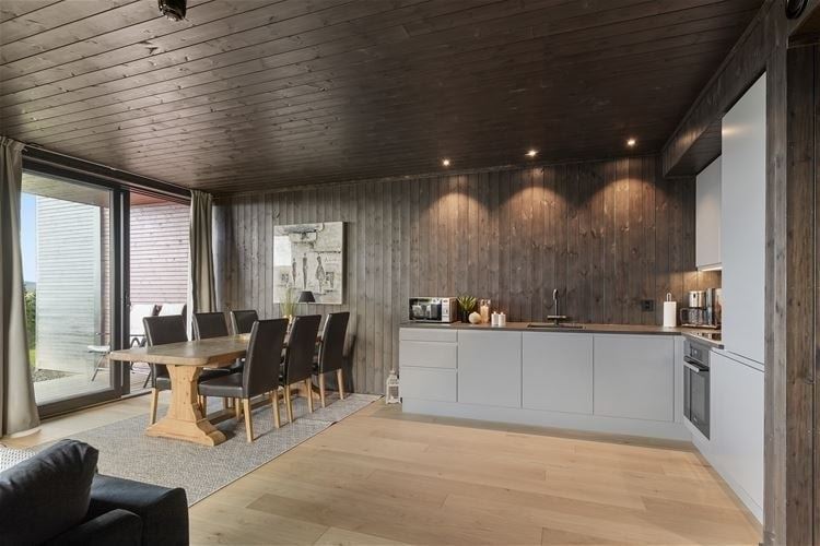 Favn Chalet 60B biedt alles wat u nodig heeft voor een ontspannen verblijf. In de keuken vindt u een fornuis, koelkast, vriezer, magnetron, vaatwasser en koffiezetapparaat.