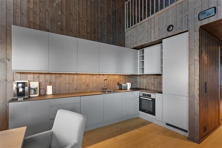 Favn Chalet 60D biedt alles wat u nodig heeft voor een ontspannen verblijf. In de keuken vindt u een fornuis, koelkast, vriezer, vaatwasser en koffiezetapparaat.