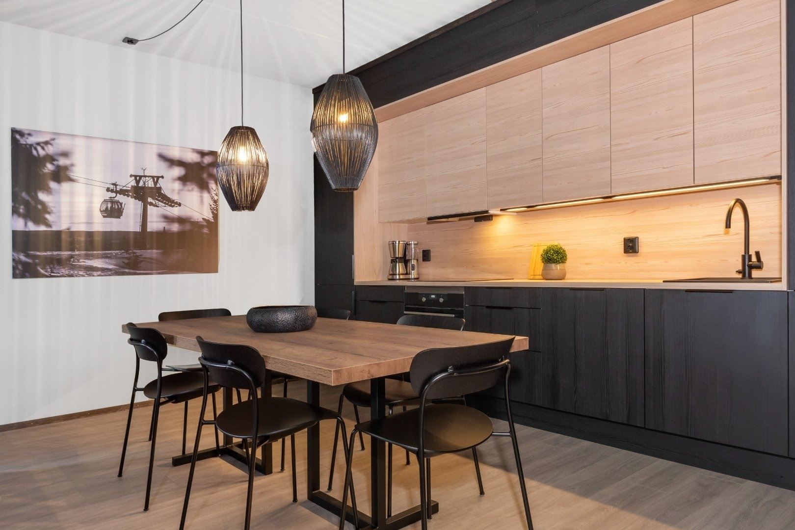 FAVN HARMONI A302 biedt alles wat u nodig heeft voor een ontspannen verblijf. In de keuken vindt u een gasfornuis, koelkast, vriezer, vaatwasser en koffiezetapparaat. Eetruimte voor 8 personen, ideaal om samen te genieten van de maaltijd. Na een dag vol activiteiten kunt u heerlijk ontspannen in de woonkamer, voorzien van een bank en televisie.