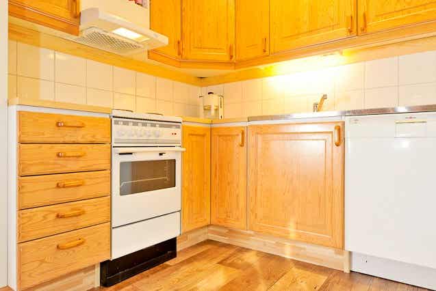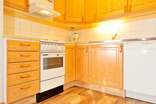 De keuken is voorzien van fornuis met oven, koelkast, vriezer, vaatwasser, magnetron.