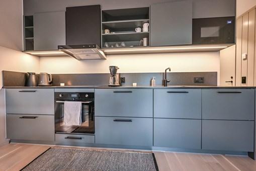De keuken is voorzien van fornuis met oven, koelkast met vriesvak, vaatwasser, magnetron.
