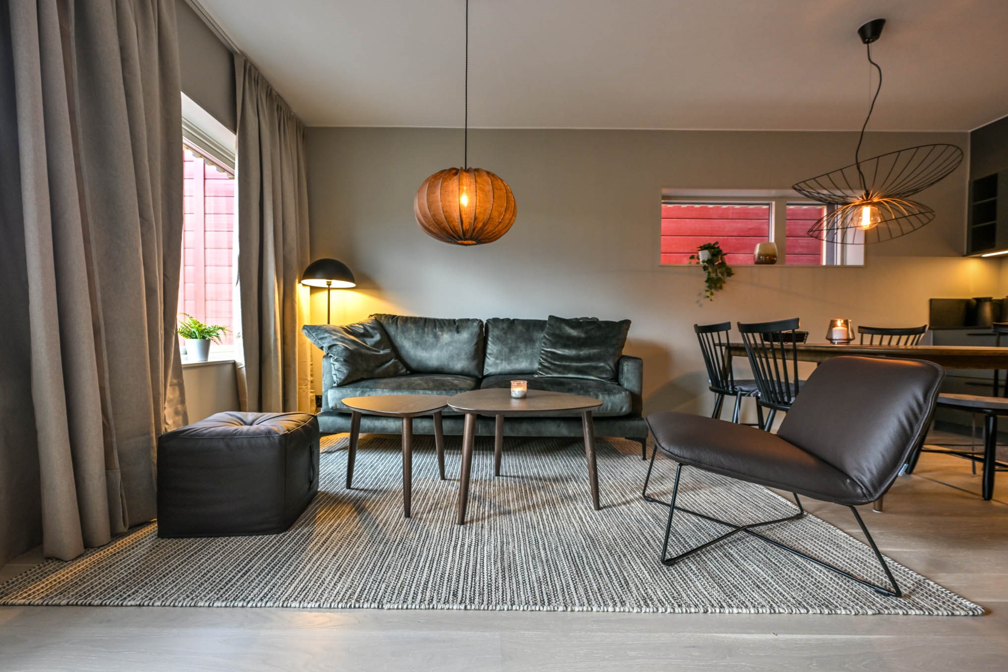 Woonkamer met gecombineerde keuken.