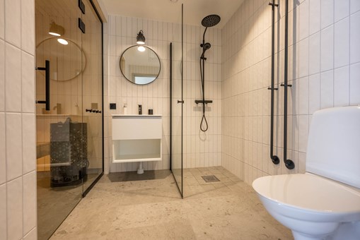 Badkamers:Badkamer 1: met douche/WC/sauna.