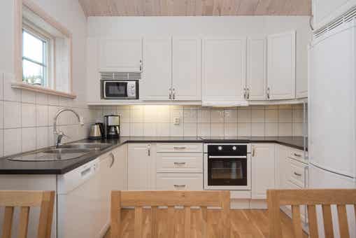 De keuken is voorzien van elektrische kookplaat met oven, koelkast, vriezer, vaatwasser, magnetron.