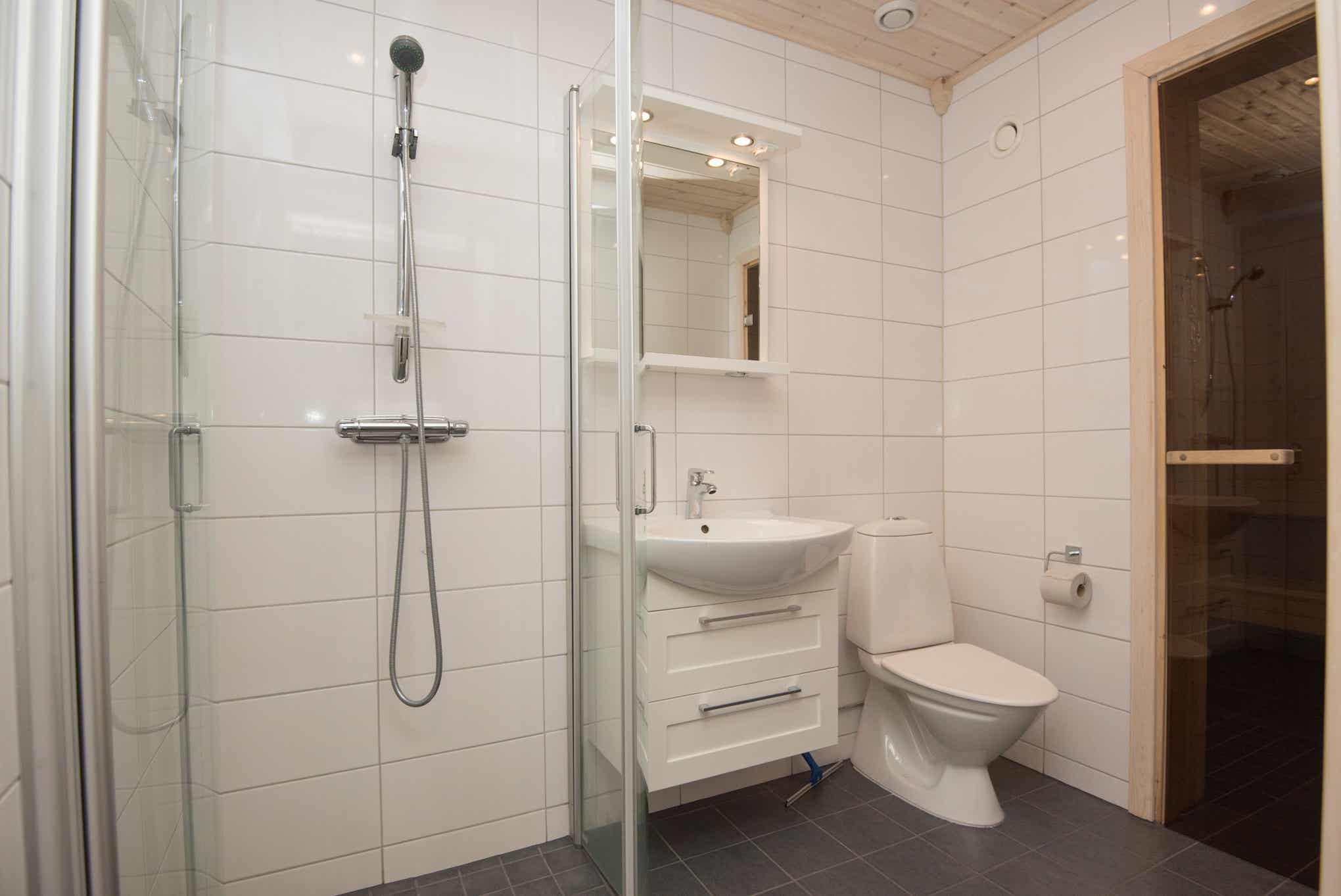 Badkamers:Badkamer 1: met douche/WC/sauna. Badkamer 2: met douche/WC.