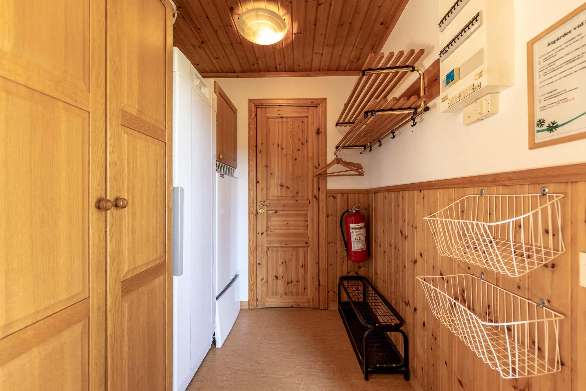 TV, droogkast, berging voor ski’s.