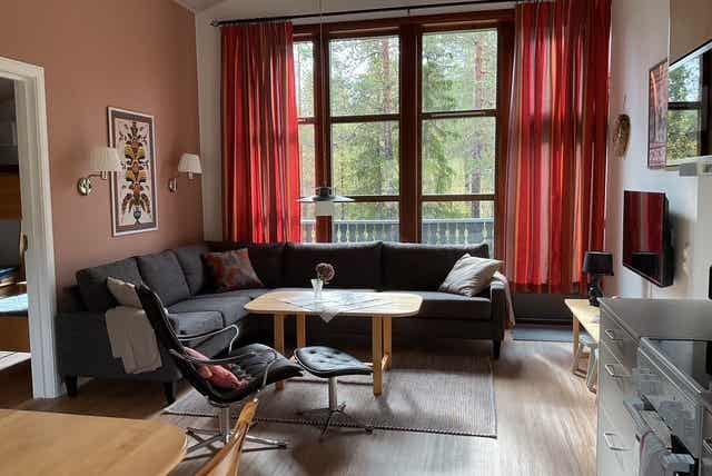Fjällvillorna ligt in Tandådalen. halfvrijstaand huis, 8 bedden, 56 m², woonkamer met gecombineerde keuken, 2 slaapkamers, 1 douche, 1 toilet, sauna.