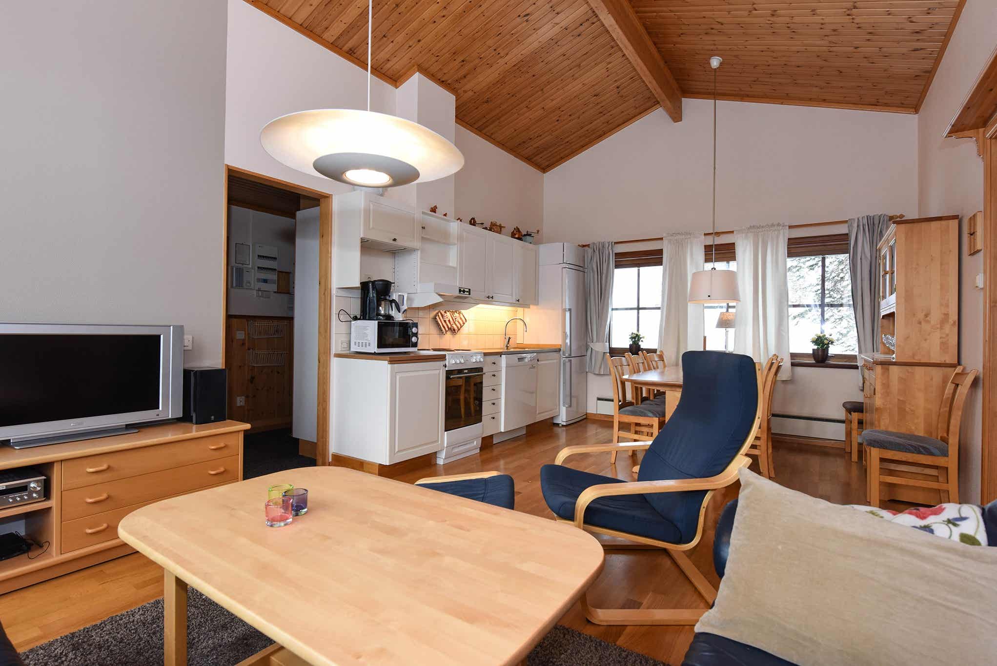 Fjällvillorna ligt in Tandådalen. halfvrijstaand huis, 8 bedden, 56 m², woonkamer met gecombineerde keuken, 2 slaapkamers, 1 douche, 1 toilet, sauna.