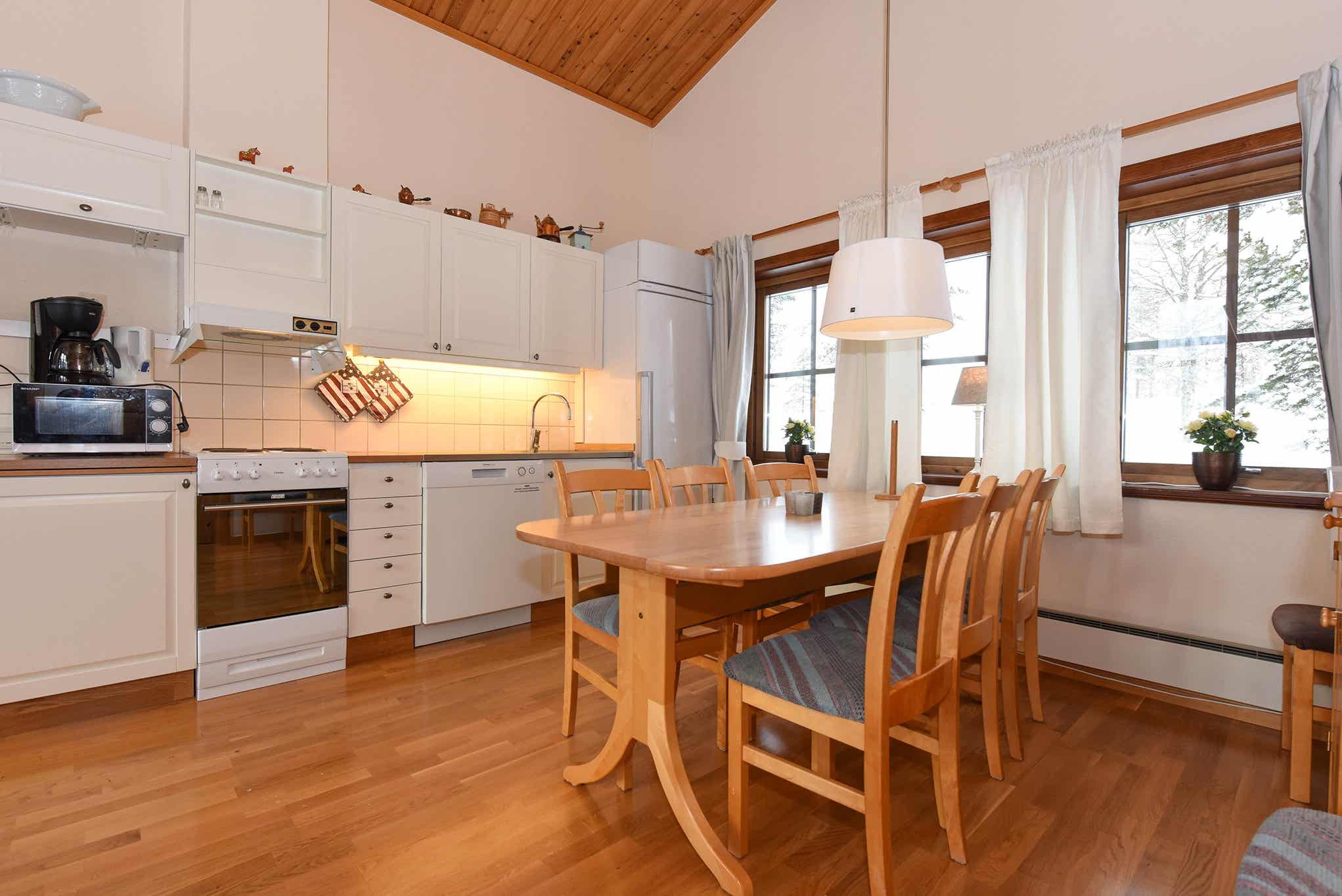 De keuken is voorzien van fornuis met oven, koelkast, vriezer, vaatwasser, magnetron.