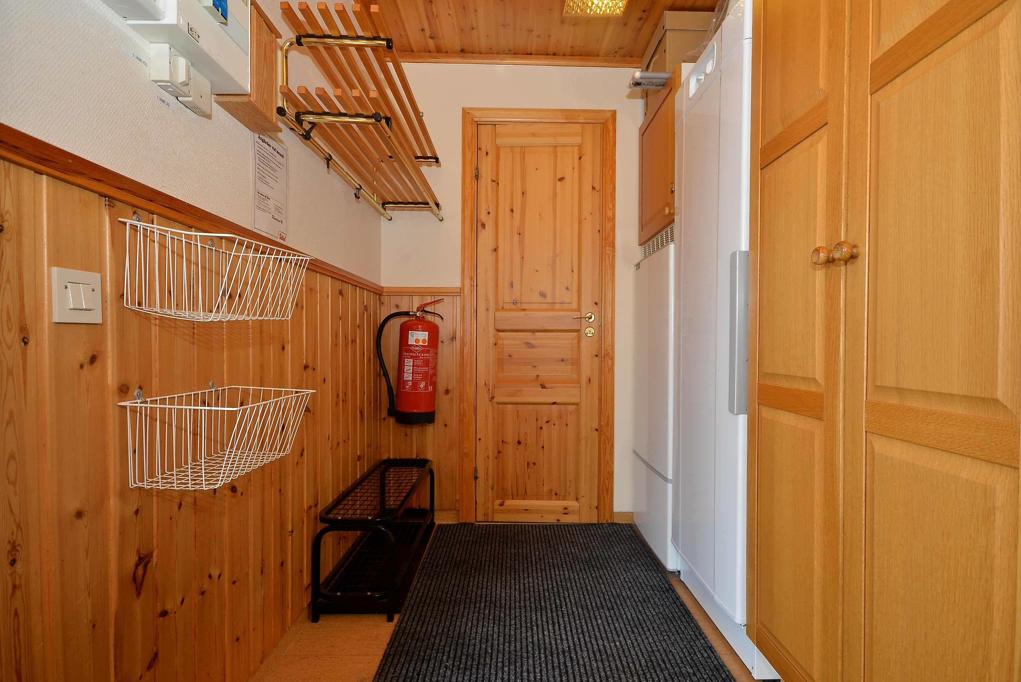 TV, droogkast, 1 kinderstoel, berging voor ski’s.