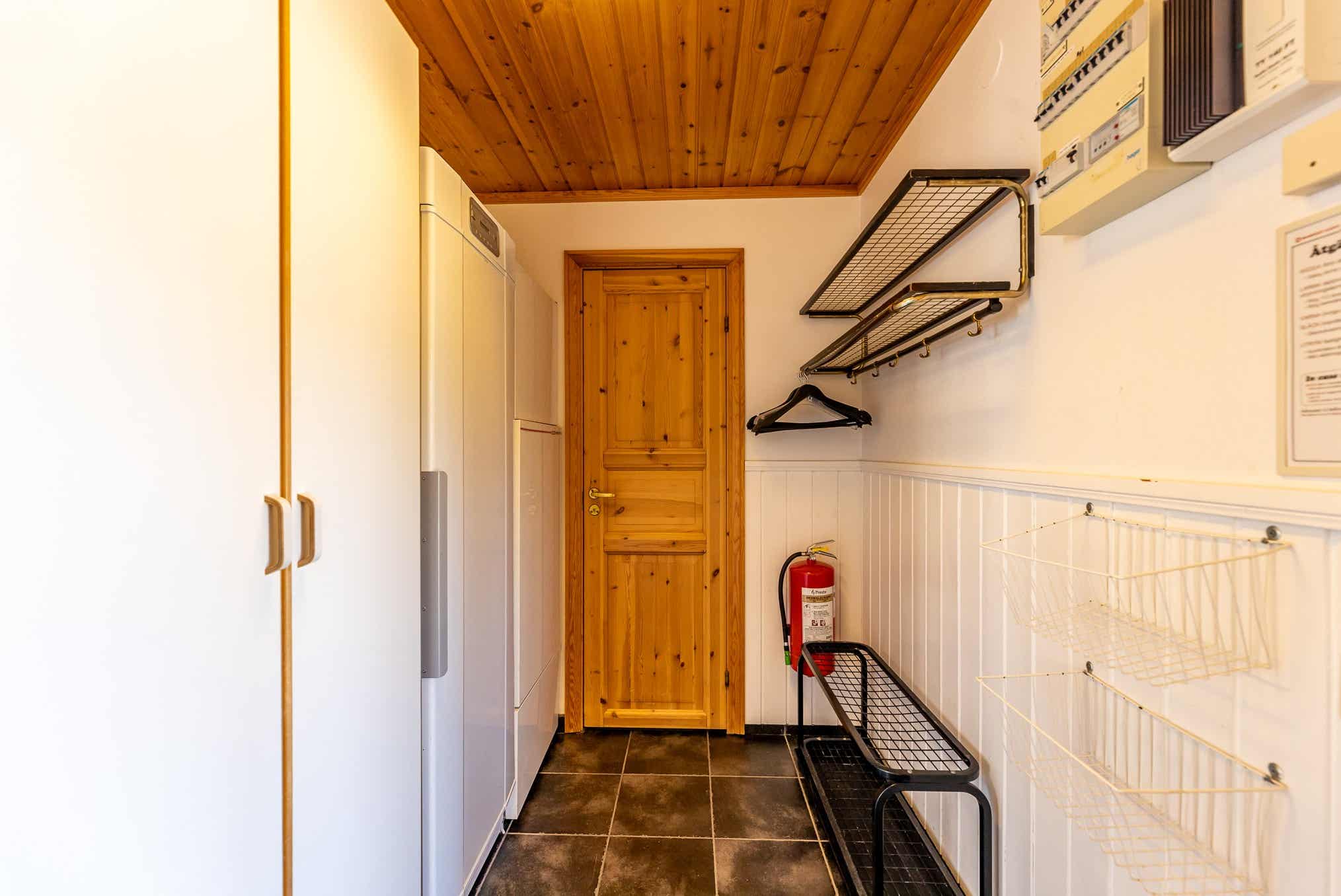 TV, droogkast, berging voor ski’s.