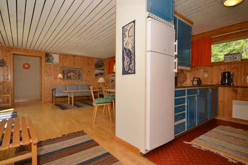 Köarskär ligt in Högfjället. Vrijstaand huisje, 6 bedden, 68 m², woonkamer met gecombineerde keuken, 3 slaapkamers, 1 douche, 1 toilet.