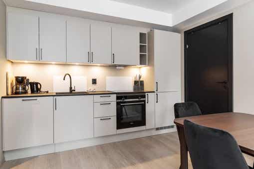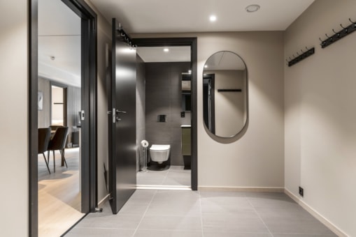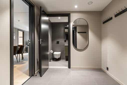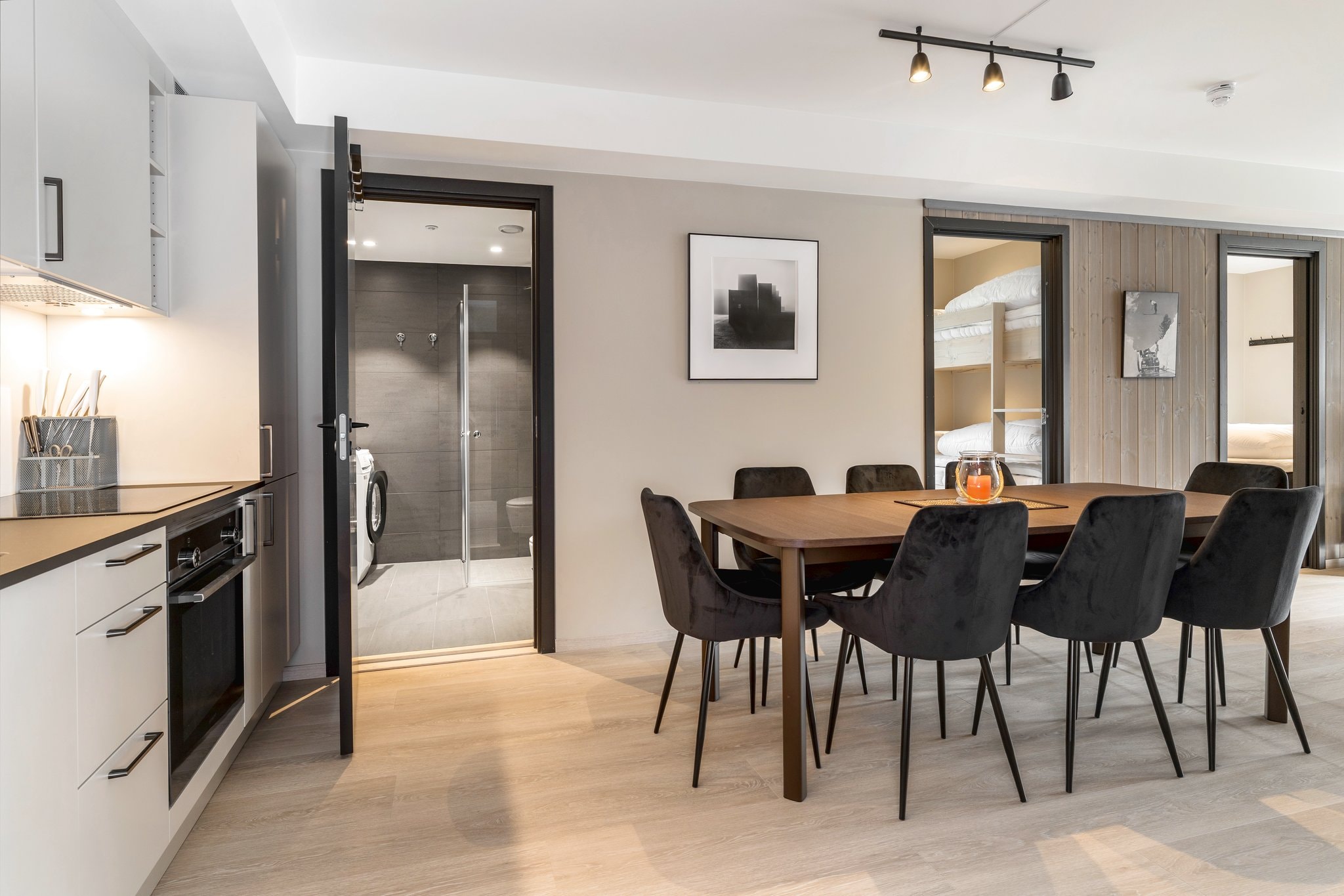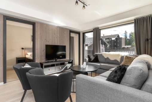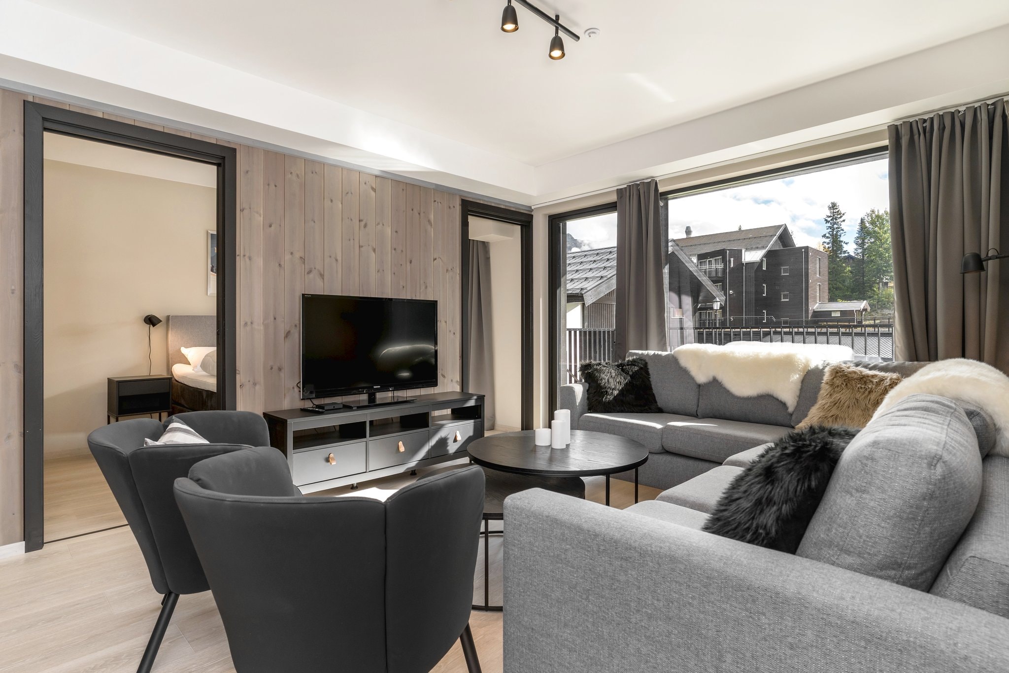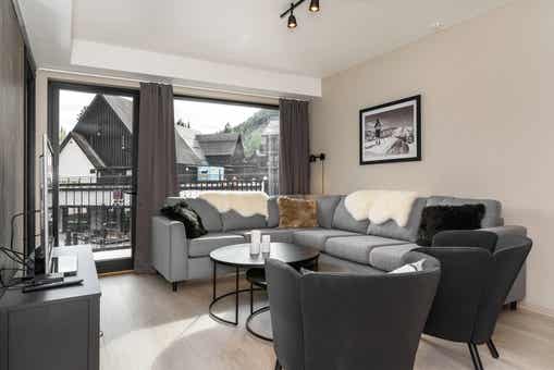 Fjellandsbyen ligt bij Hemsedal Skisenter. Appartement op verdieping 3, 8 bedden, 79 m², woonkamer met gecombineerde keuken, 3 slaapkamers, 2 douches, 2 WC, bouwjaar 2024.