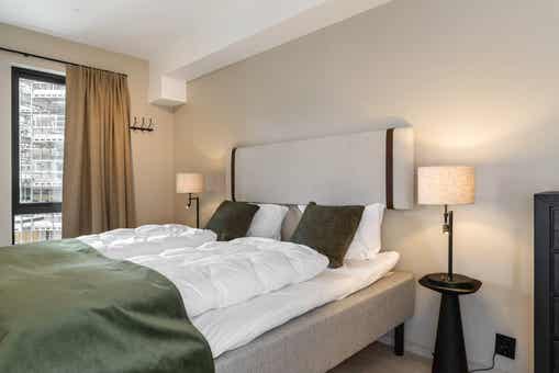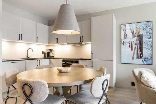 Fjellandsbyen ligt bij Hemsedal Skisenter. Appartement op verdieping 2, 2+3 bedden, 54 m², woonkamer met gecombineerde keuken, 1 slaapkamers, 1 bedstede, 1 douche, 1 toilet, bouwjaar 2024.