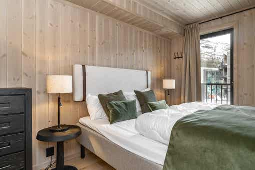 Fjellandsbyen ligt bij Hemsedal Skisenter. Appartement op verdieping 3, 2+2 bedden, 44 m², woonkamer met gecombineerde keuken, 1 slaapkamers, 1 bedstede, 1 douche, 1 toilet, bouwjaar 2024.