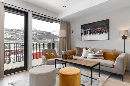 Fjellandsbyen ligt bij Hemsedal Skisenter. Appartement op verdieping 2, 2+2 bedden, 39 m², woonkamer met gecombineerde keuken, 1 slaapkamers, 1 bedstede, 1 douche, 1 toilet, bouwjaar 2024.