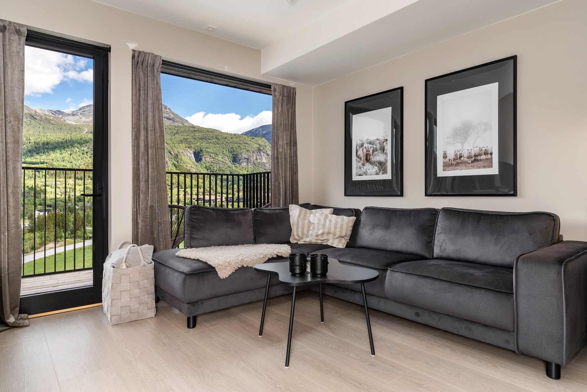 Fjellandsbyen ligt bij Hemsedal Skisenter. Appartement op verdieping 5, 2+2 bedden, 39 m², woonkamer met gecombineerde keuken, 1 slaapkamers, 1 bedstede, 1 douche, 1 toilet, bouwjaar 2024.