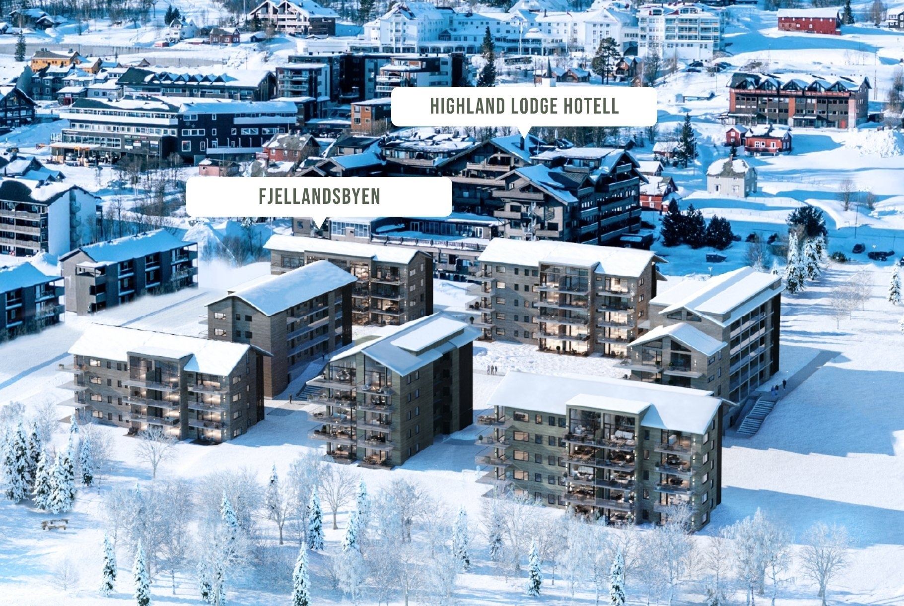 Onze nieuwe en mooie appartementen in Highland Lodge Fjellandsby zijn te vinden in een aangrenzend gebouw direct onder Highland Lodge Hotell.