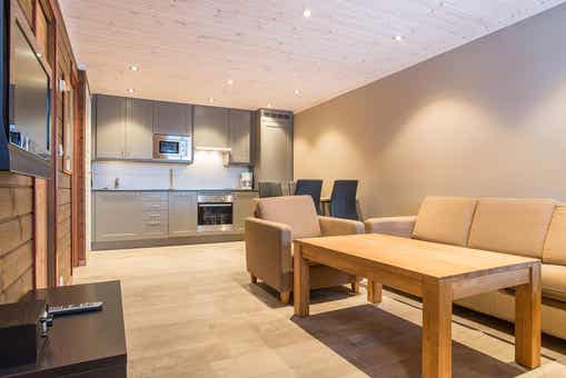 Gezinsvriendelijke appartementen in het centrum van Høyfjellsenteret, direct door de VelKomstSenteret. Beschikbaar met 4 of 8 bedden. De grotere appartementen hebben open haarden en parkeren binnenshuis.