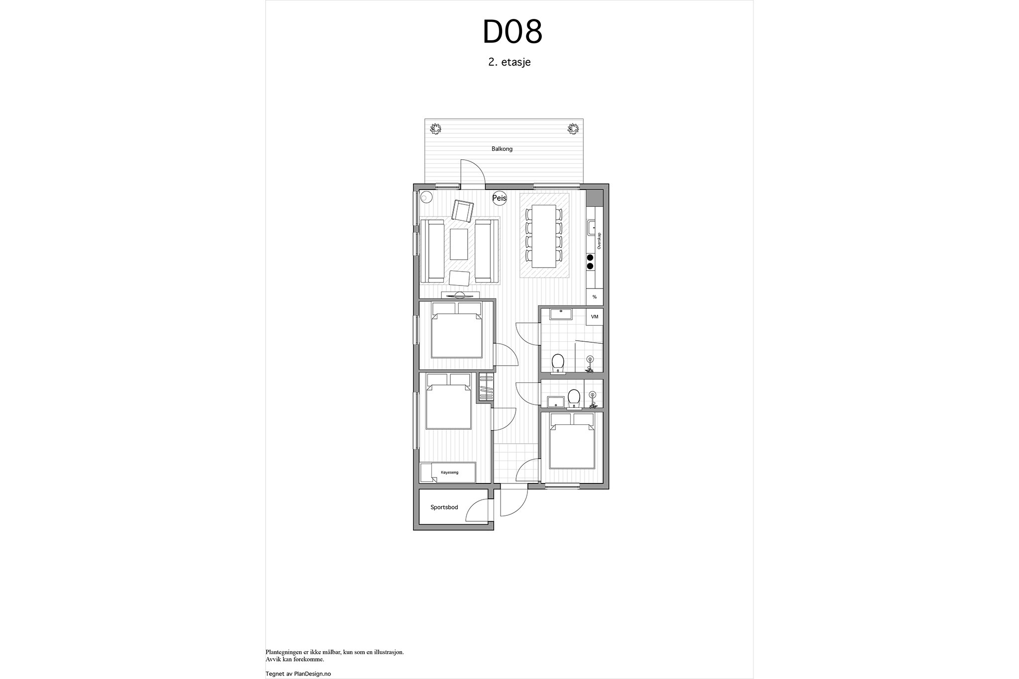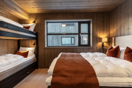 Fjellnest bevindt zich in Hemsedal Skisenter. Appartement op verdieping 2, 8 bedden, 71 m², woonkamer met gecombineerde keuken, 3 slaapkamers, 2 douches, 2 WC, bouwjaar 2023.