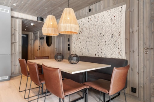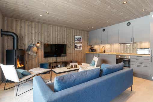Fjellnest bevindt zich in Hemsedal Skisenter. Appartement op verdieping 1, 8 bedden, 71 m², woonkamer met gecombineerde keuken, 3 slaapkamers, 1 douche, 1 toilet, bouwjaar 2023.
