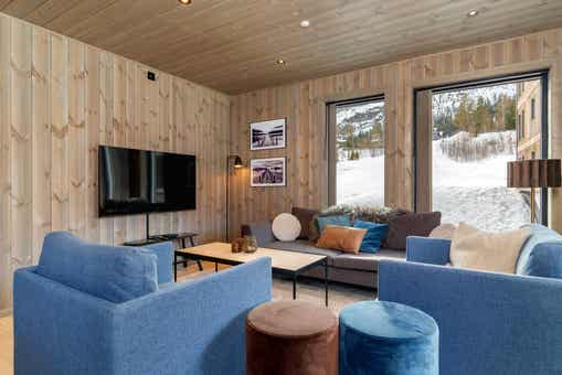 Fjellnest bevindt zich in Hemsedal Skisenter. Appartement op verdieping 1, 8 bedden, 71 m², woonkamer met gecombineerde keuken, 3 slaapkamers, 1 douche, 1 toilet, bouwjaar 2023.