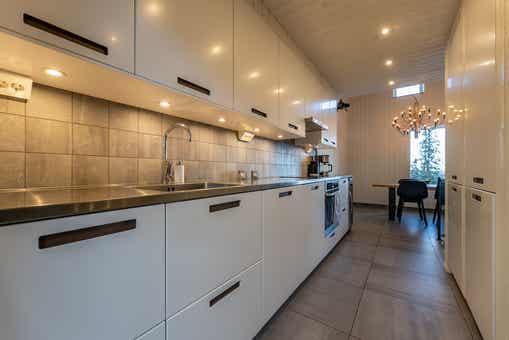 De keuken is voorzien van fornuis met oven, koelkast, vriezer, vaatwasser, magnetron.