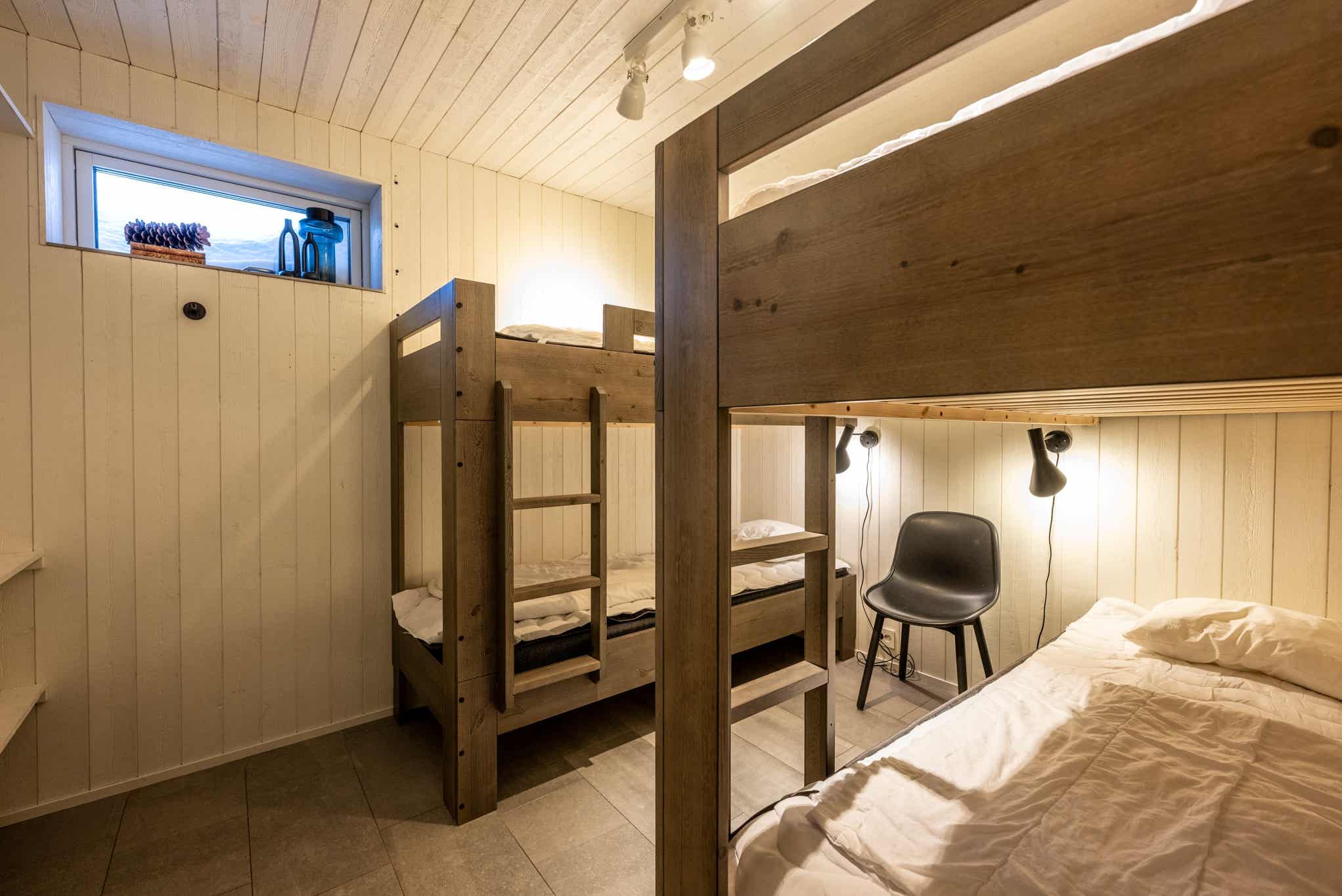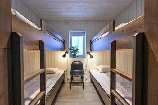 Slaapkamers:Slaapkamer-1 = 2 stapelbedden 80 cm breed. Slaapkamer-2 = 2 stapelbedden 80 cm breed. Slaapkamer-3 = 1 stapelbed met 120 cm breed onderbed en 80 cm breed bovenbed.