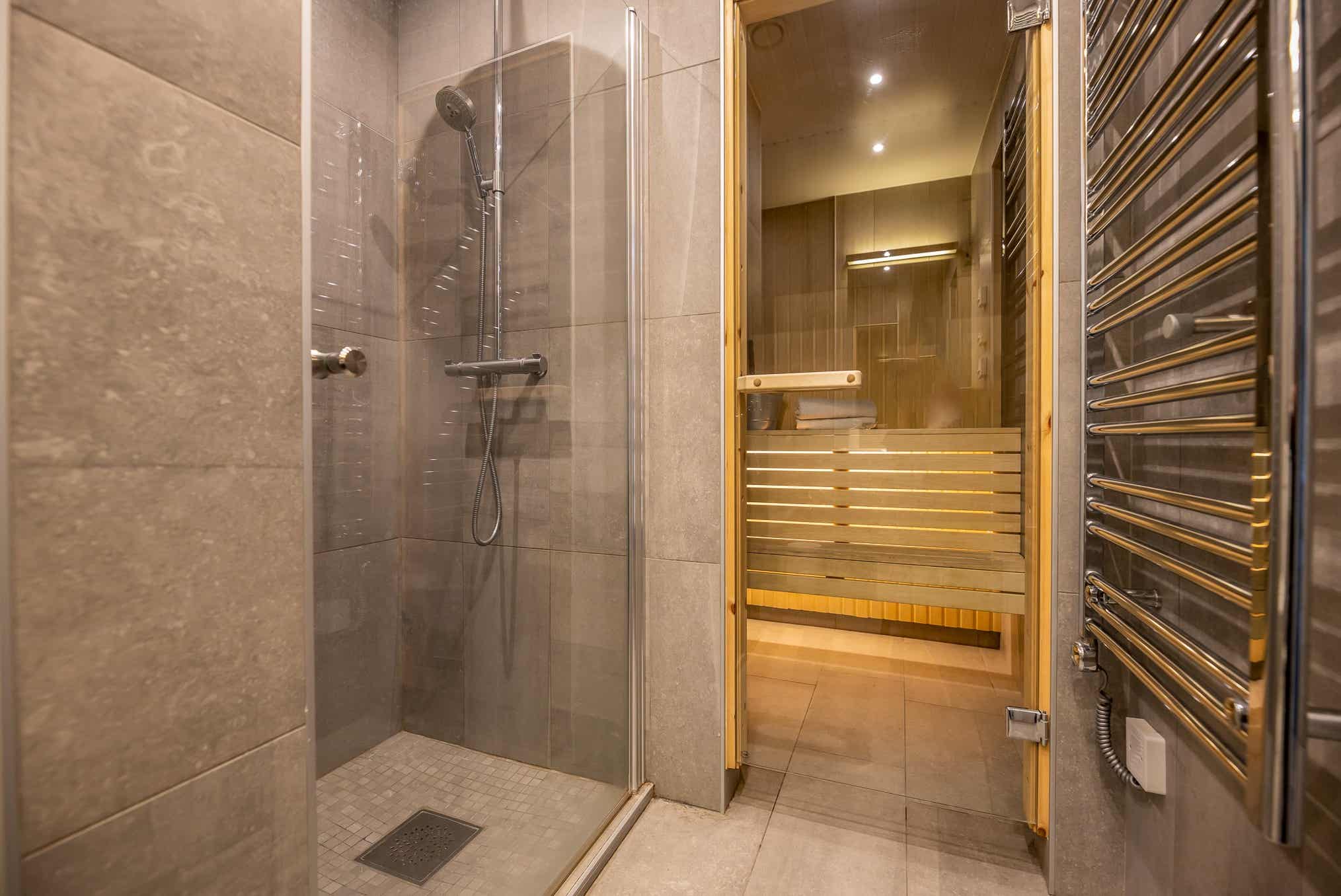 Badkamers:Badkamer 1: met douche/WC/sauna. Badkamer 2: met douche/WC. Badkamer 3: met toilet.