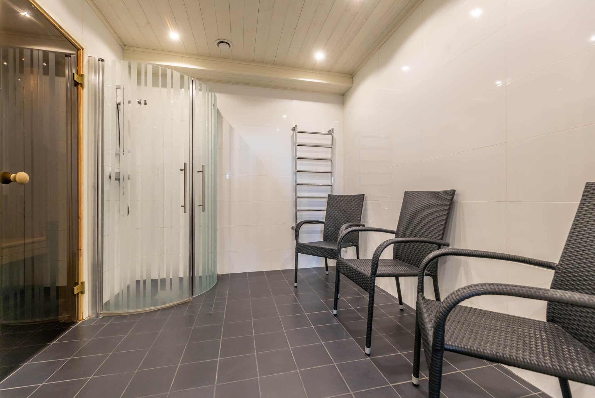Badkamers:Badkamer 1: met douche/WC/sauna. Badkamer 2: met douche/WC.