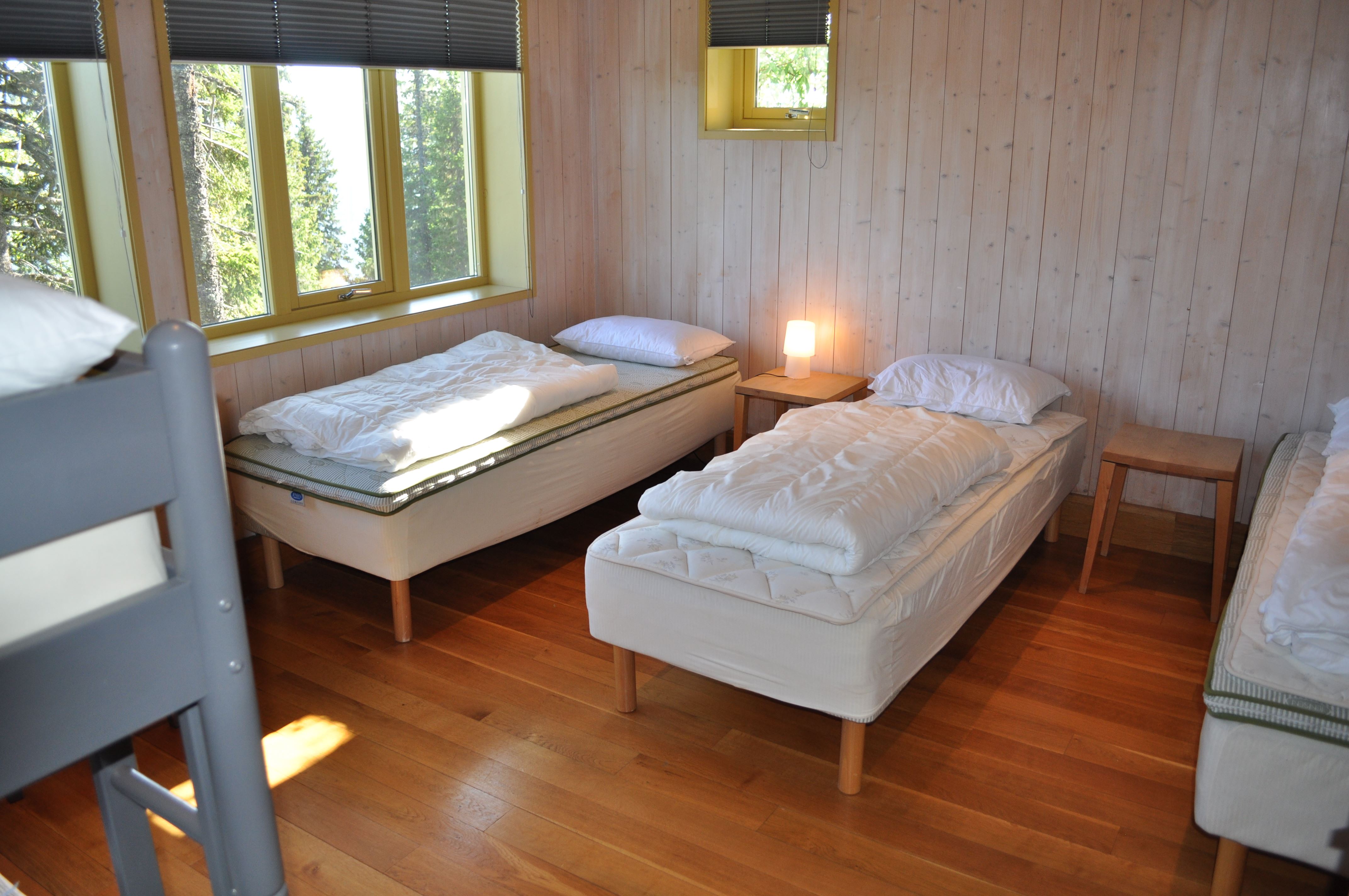 Slaapkamer 7: stapelbed (80 cm x 200 cm) + 2x enkele bedden (90 cm x 200 cm)