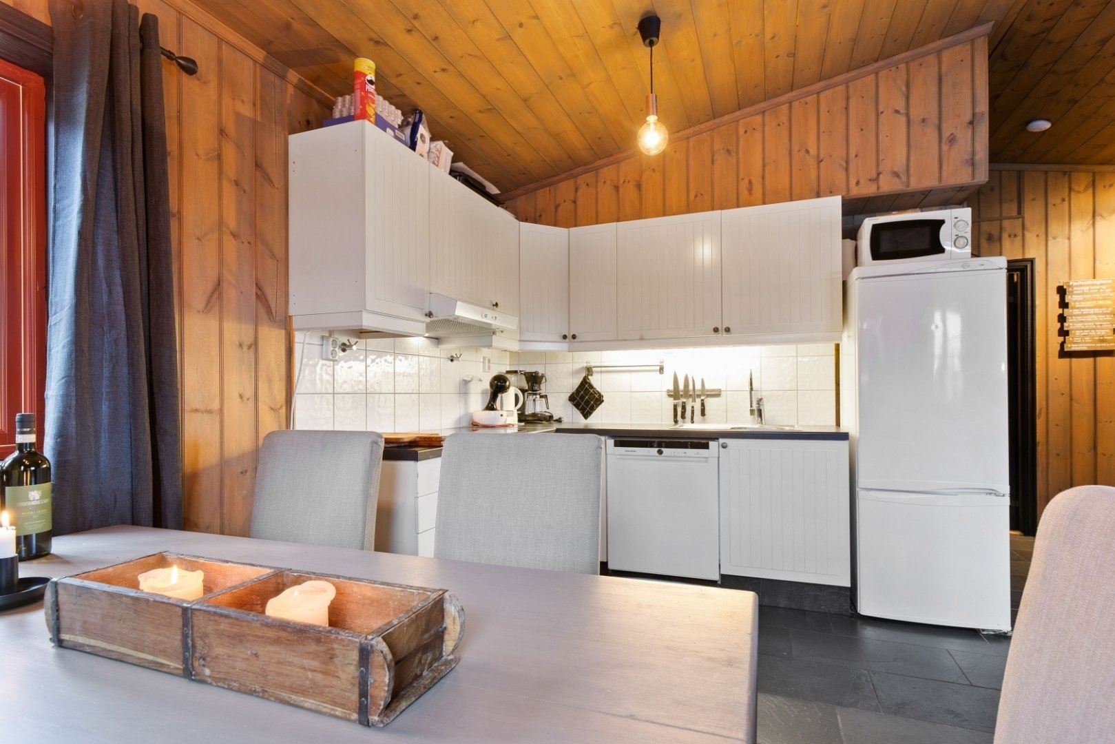 Gammelseteråsen 41 biedt alles wat u nodig heeft voor een ontspannen verblijf. In de keuken vindt u een fornuis, koelkast, vriezer, vaatwasser, koffiezetapparaat en een Nespresso-apparaat. De eetkamer biedt plaats aan 7 personen, ideaal om gezellig samen te eten.