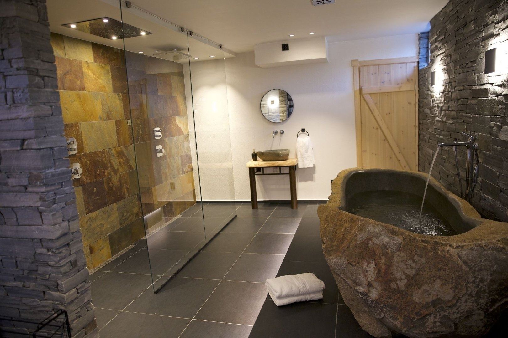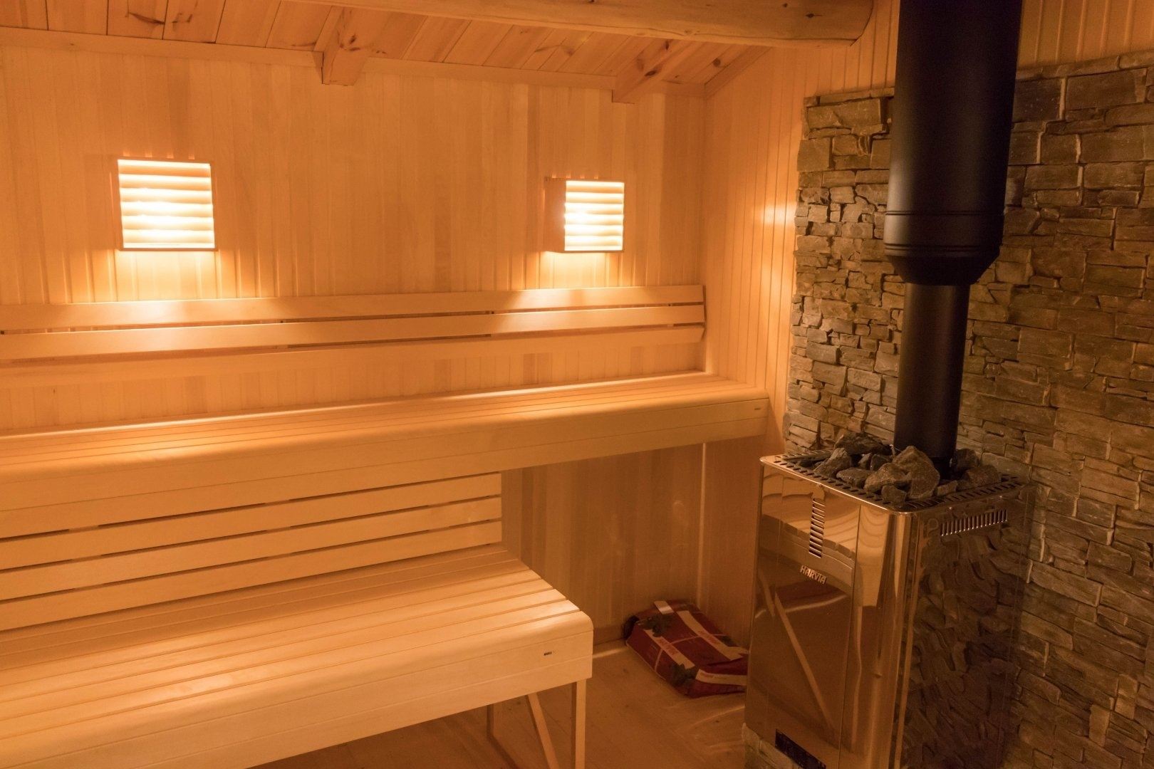 Badkamer 5: Sparuimte met sauna, ligbad, bubbelbad, douches en toilet