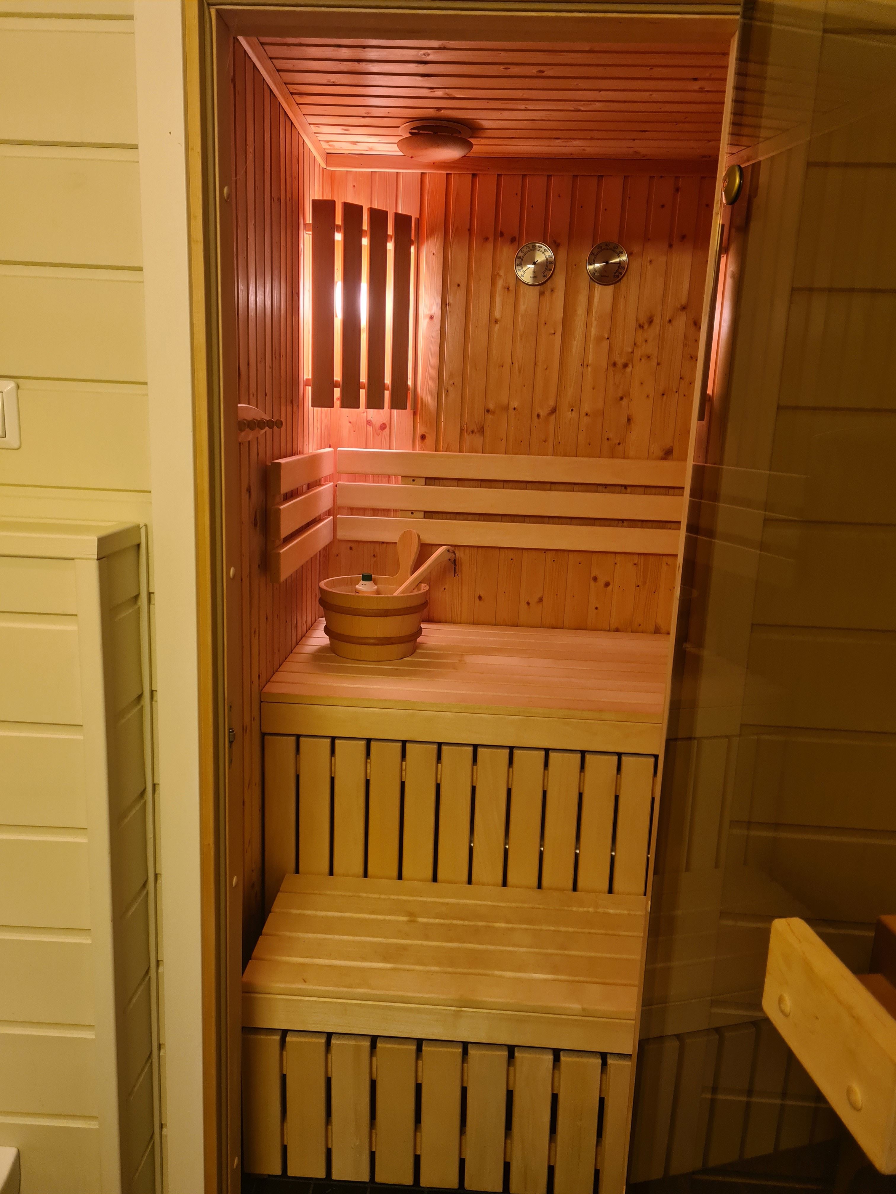Badkamer 1: douche, wastafel, toilet en sauna.