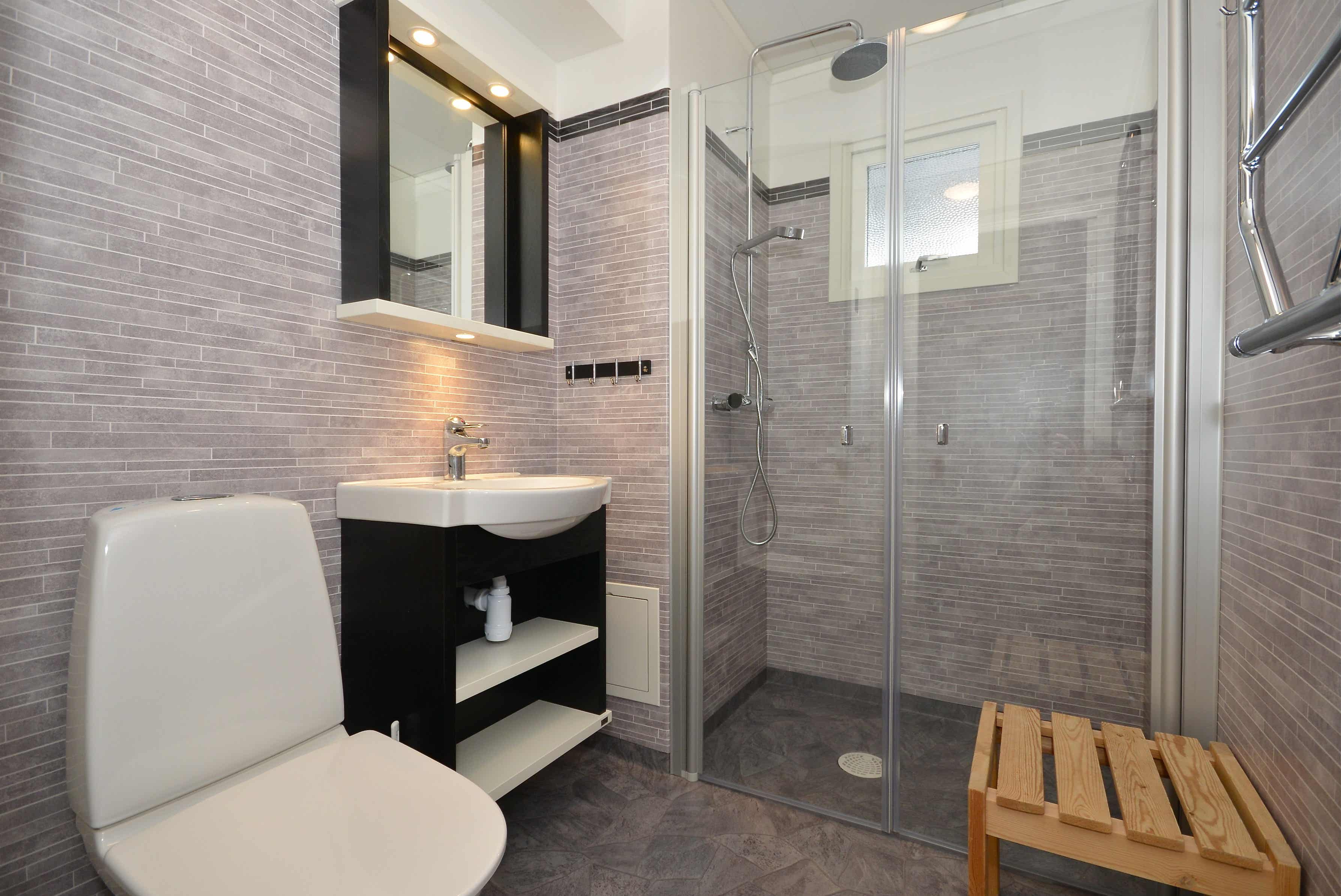 Badkamers:Badkamer 1: met douche/WC.