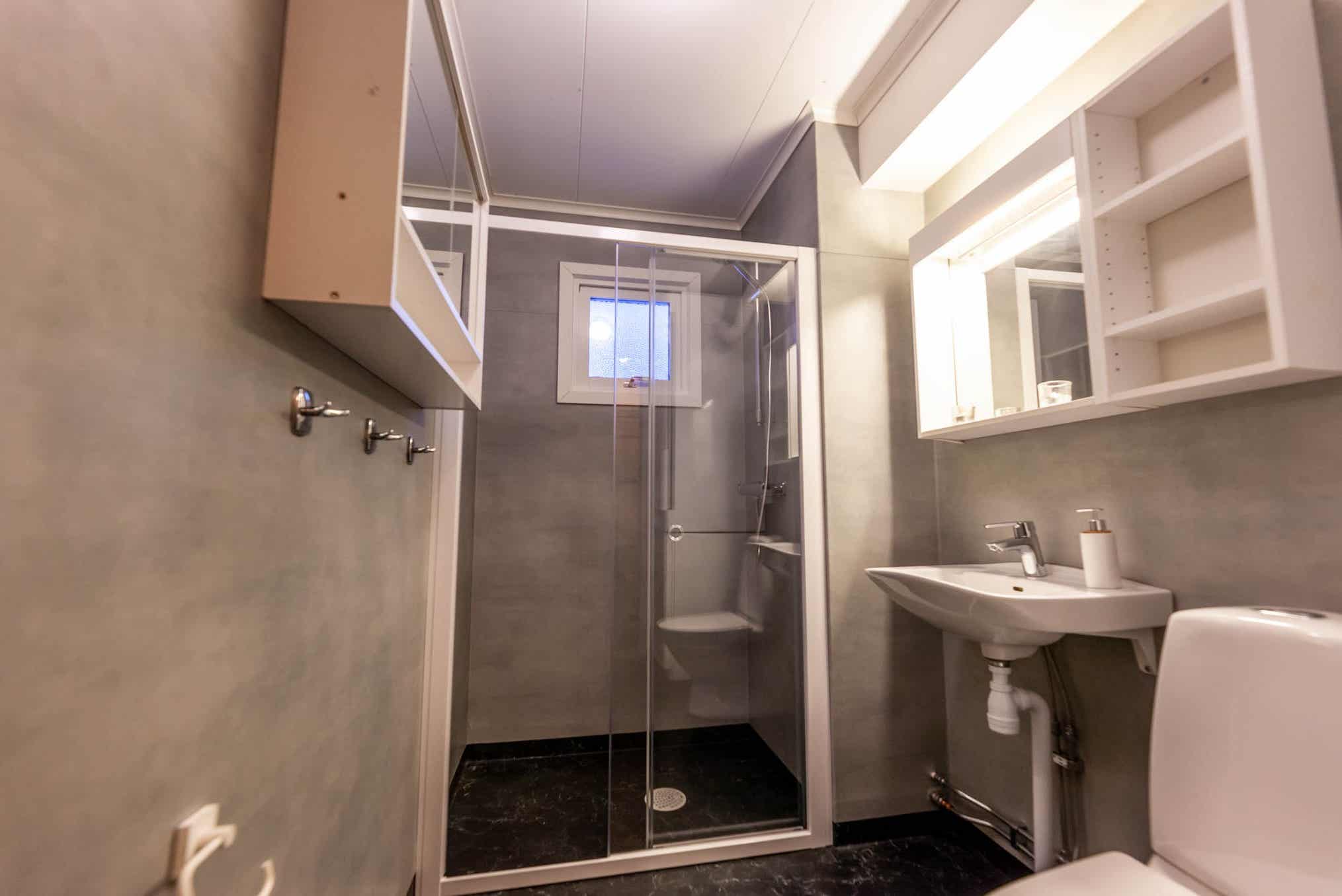 Badkamers:Badkamer 1: met douche/WC.