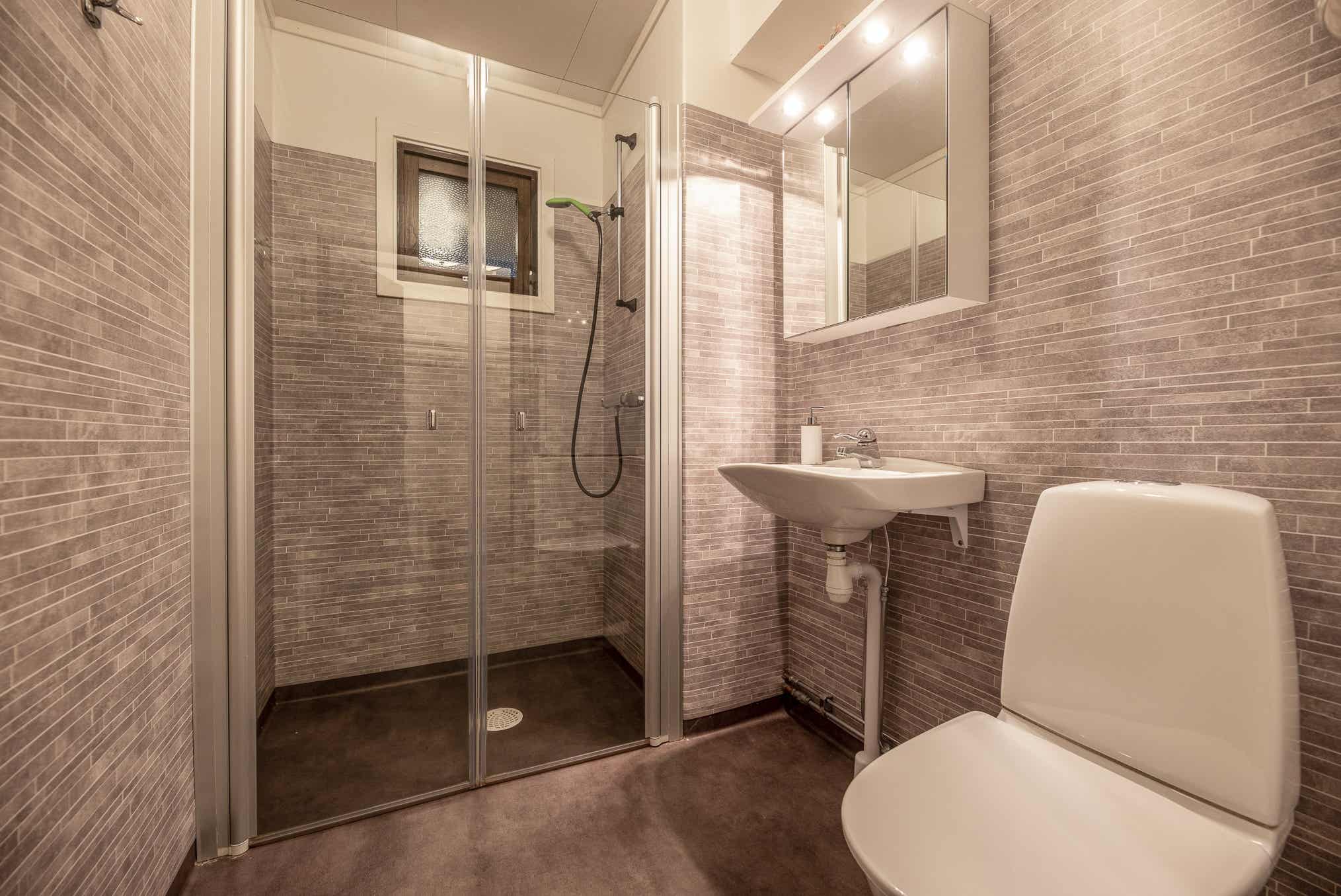 Badkamers:Badkamer 1: met douche/WC.