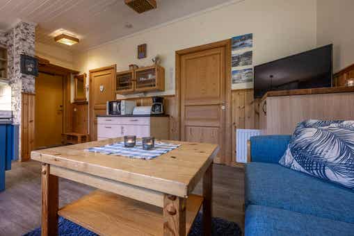 TV, droogkast, berging voor ski’s, terras (geen sneeuwruimen), buitenmeubilair.