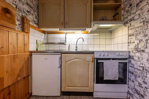 De keuken is voorzien van fornuis met oven, koelkast, vriezer, vaatwasser, magnetron.