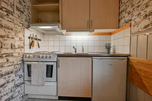 De keuken is voorzien van fornuis met oven, koelkast, vriezer, vaatwasser, magnetron.