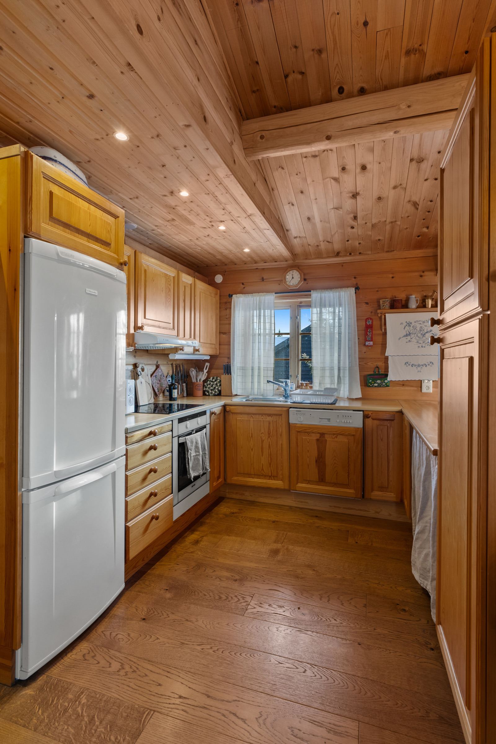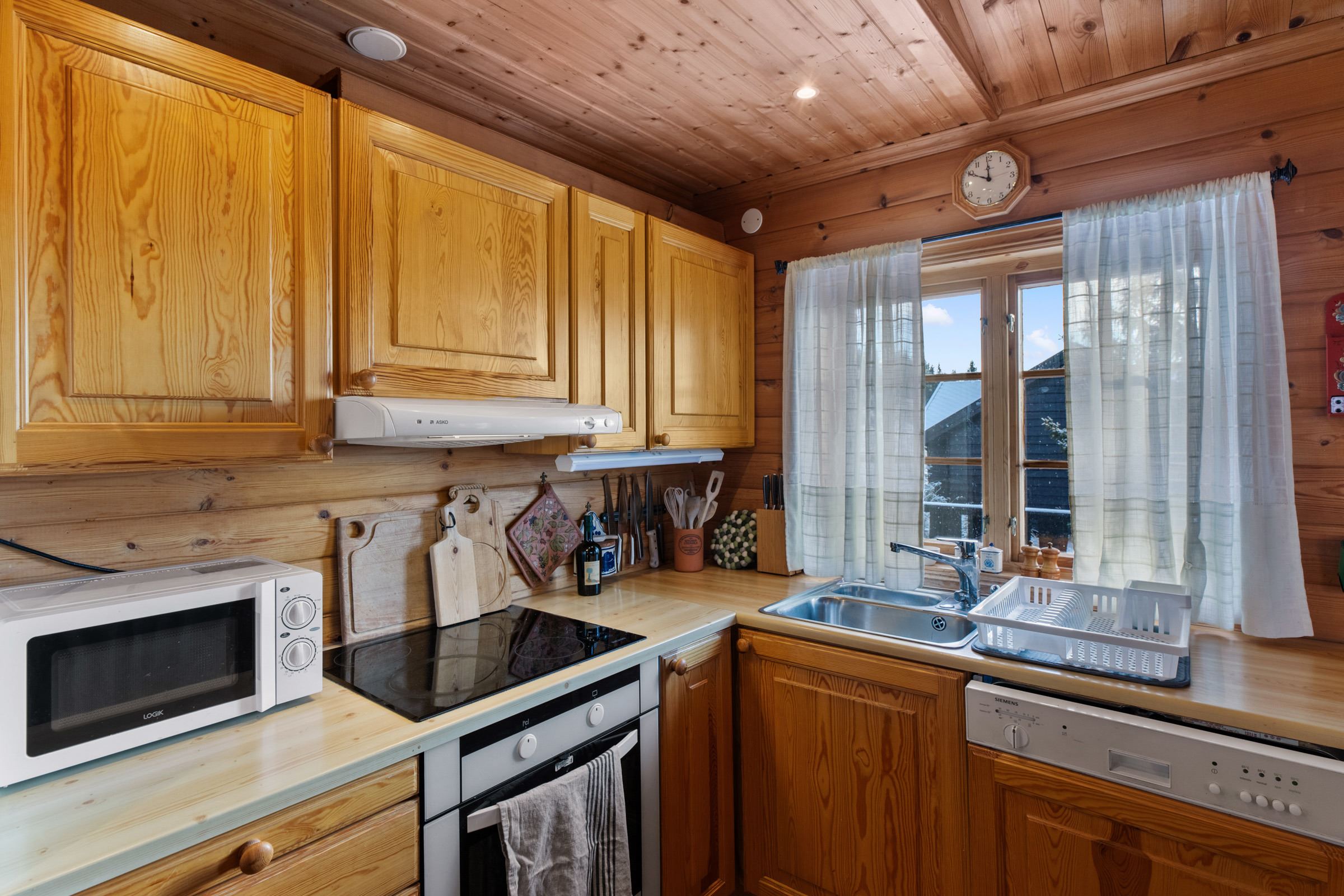 De keuken is uitgerust met een fornuis, koelkast, vriezer, magnetron en vaatwasser.