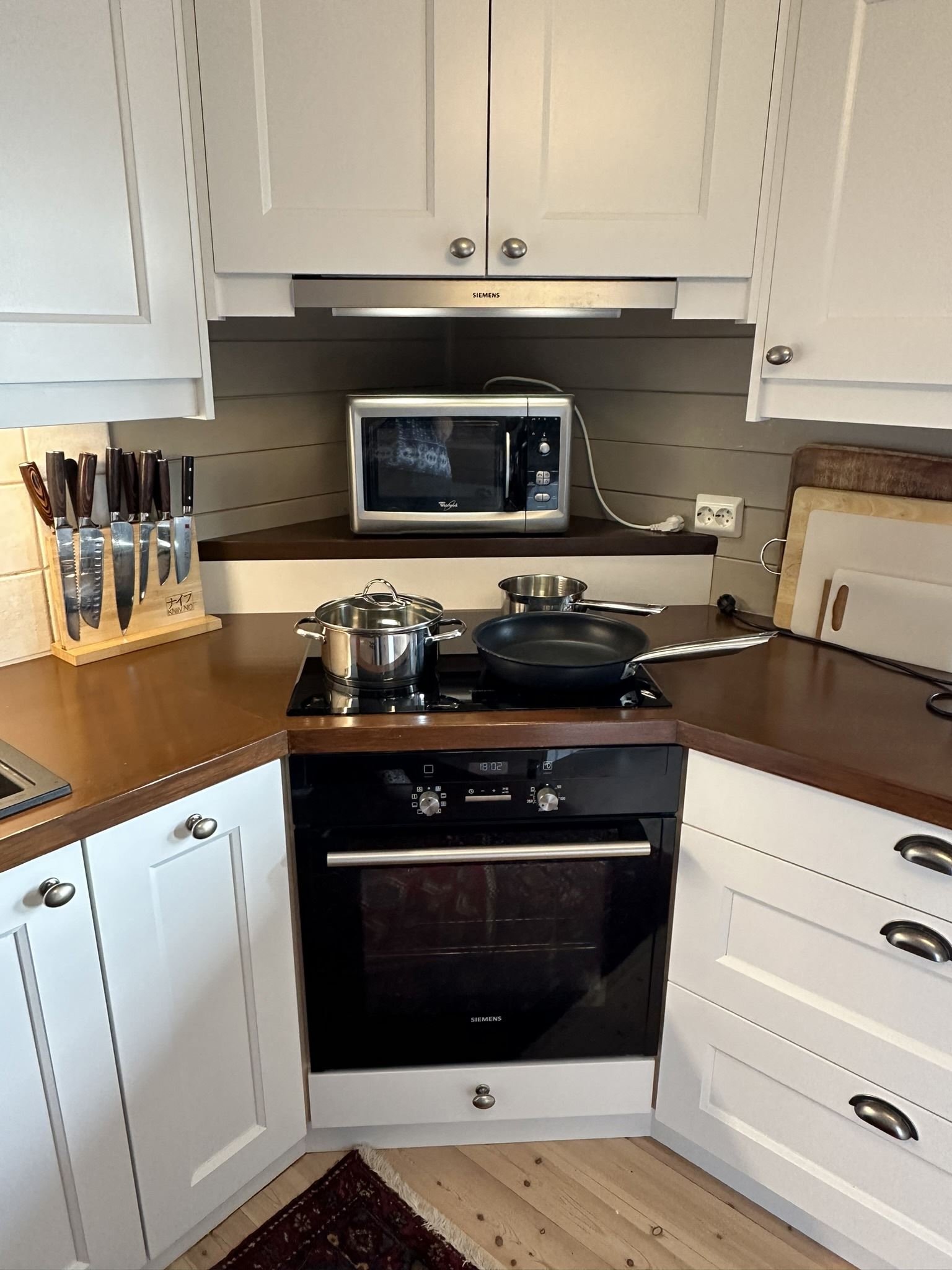 De keuken is volledig uitgerust met een koelkast, vriezer, fornuis, magnetron en vaatwasser.
