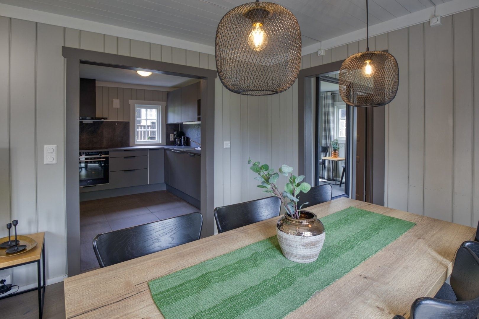 GudbrandsGard hyttegrend 2 biedt alles wat u nodig heeft voor een ontspannen verblijf. In de keuken vindt u een gasfornuis, koelkast, vriezer, magnetron, vaatwasser en koffiezetapparaat.