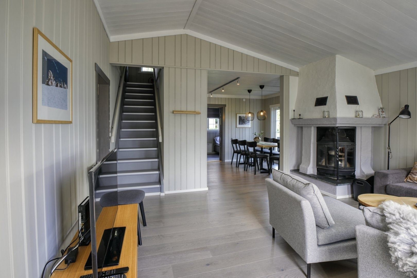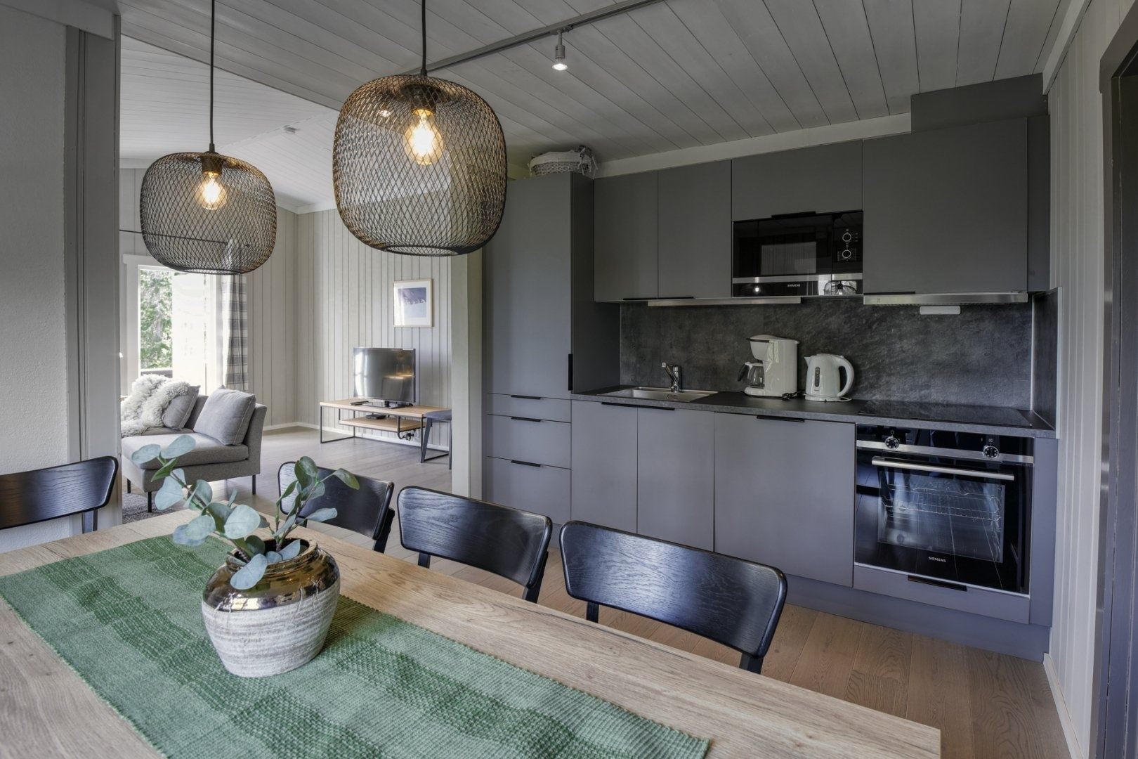 GudbrandsGard Hyttegrend 4 biedt alles wat u nodig heeft voor een ontspannen verblijf. In de keuken vindt u een gasfornuis, koelkast, vriezer, magnetron, vaatwasser en koffiezetapparaat.