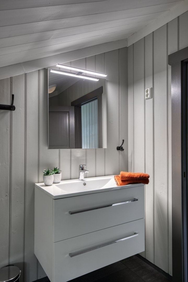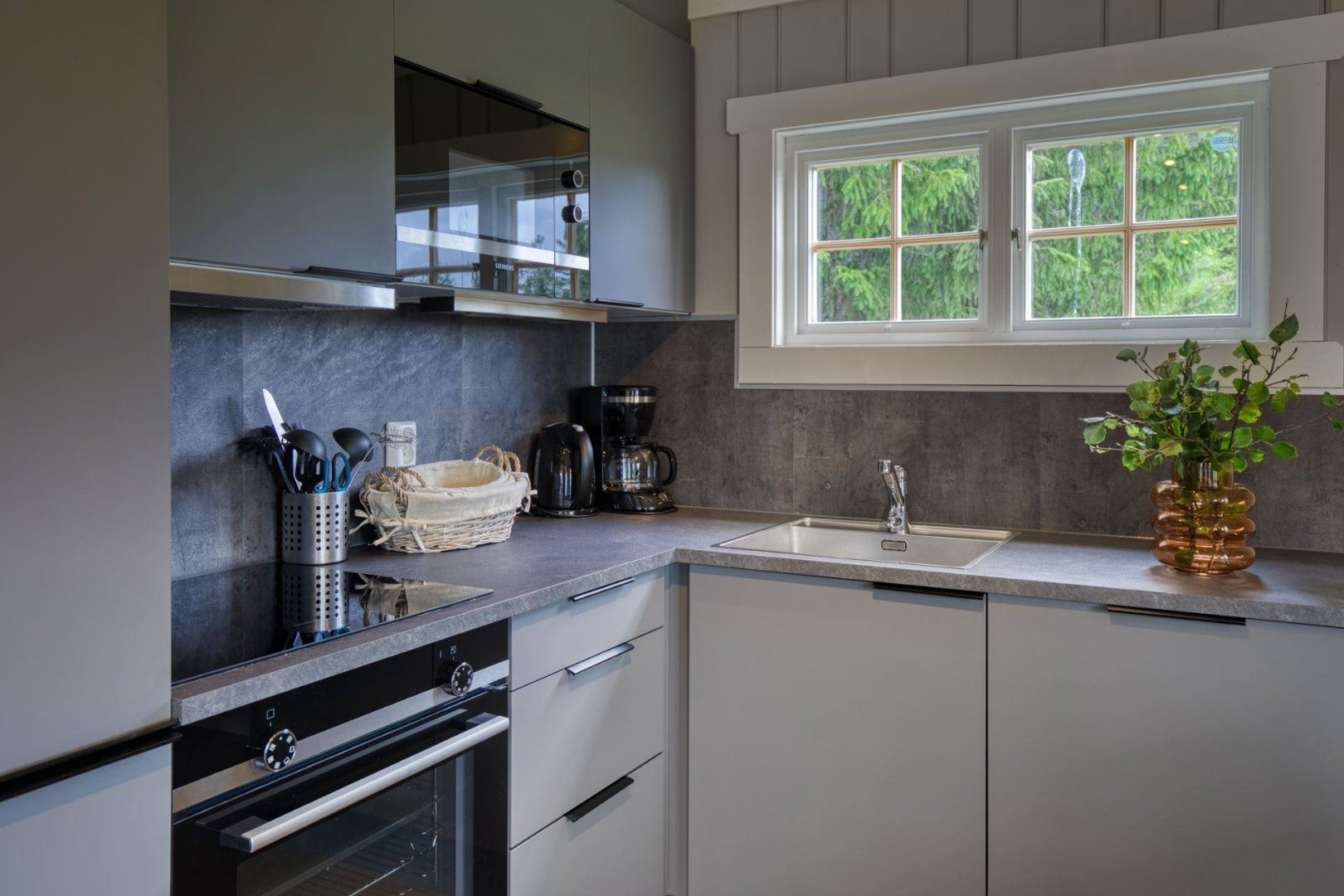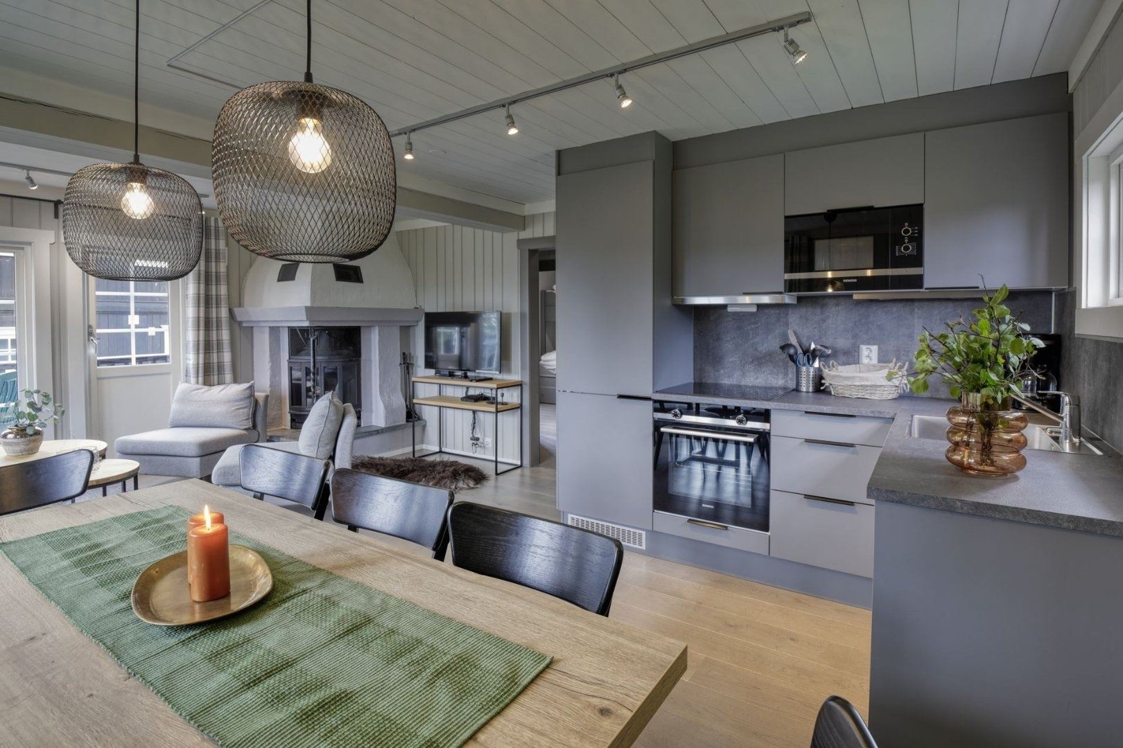 GudbrandsGard Hyttegrend 8 biedt alles wat u nodig heeft voor een ontspannen verblijf. In de keuken vindt u een gasfornuis, koelkast, vriezer, magnetron, vaatwasser en koffiezetapparaat.